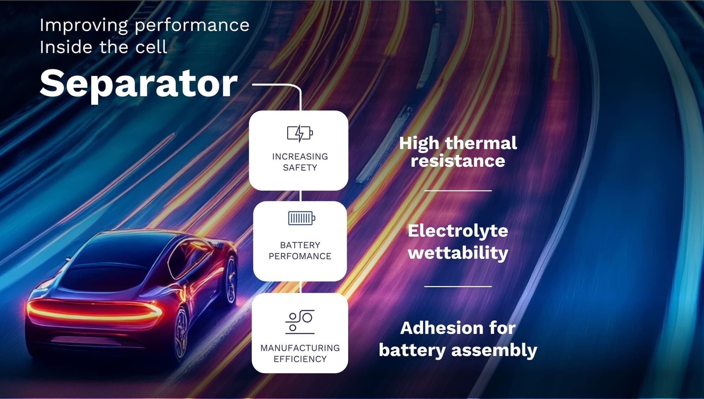 Designed to address the key challenges of modern lithium-ion batteries, Incellion™ Sp enhances mechanical strength, improves thermal and chemical stability, and helps maintain consistent separator performance; all essential to support electric mobility, consumer electronics, and advanced energy storage systems.