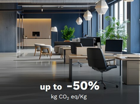(2) Versus the former carbon footprint calculated for these products. Calculated according to ISO 14067 and Together for Sustainability (TfS) guideline V3 PCF methodology at cradle-to-gate, including biogenic removals (around 5%), and compared with industry average data from the CEPE V4 database for polyester resins (up to 35%).