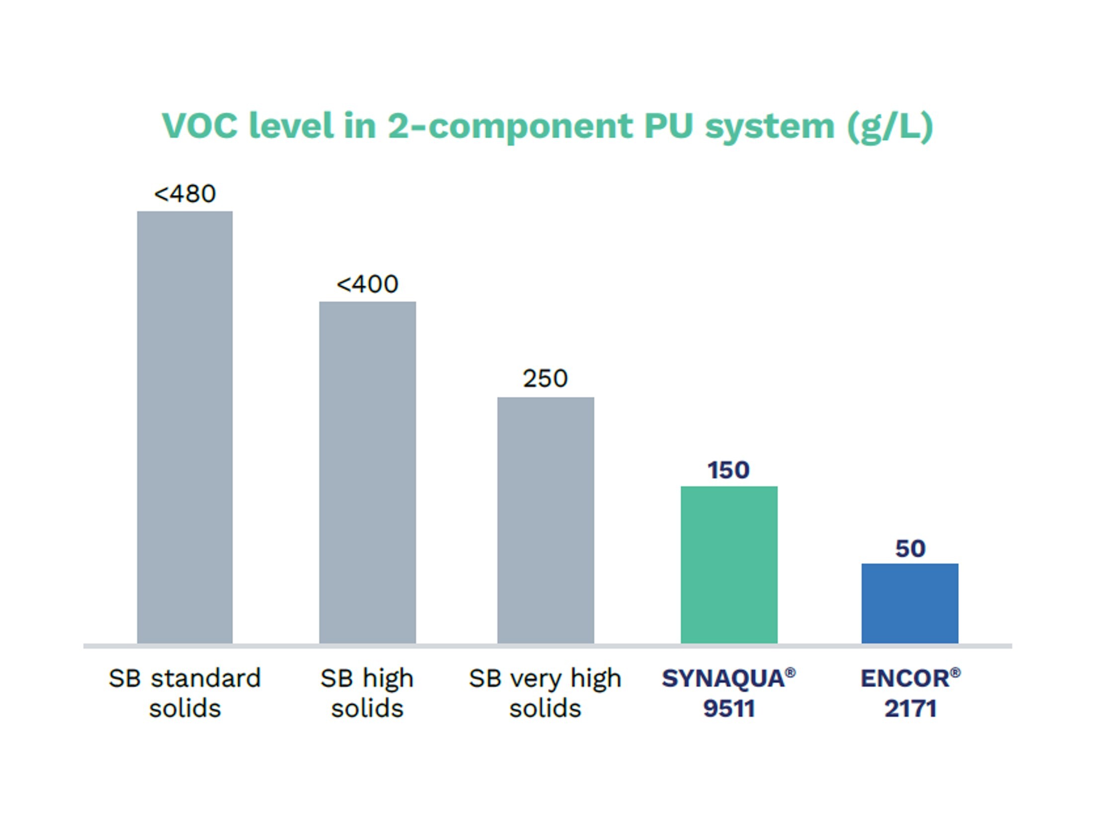 VOC reduction without performance trade-off has long been a challenge for industrial multipurpose coatings. With Synaqua® and Encor® binders, Arkema bridges this gap—offering gloss, drying speed and durability levels that approach solventborne 2K systems, while dramatically lowering VOCs and improving sustainability credentials.