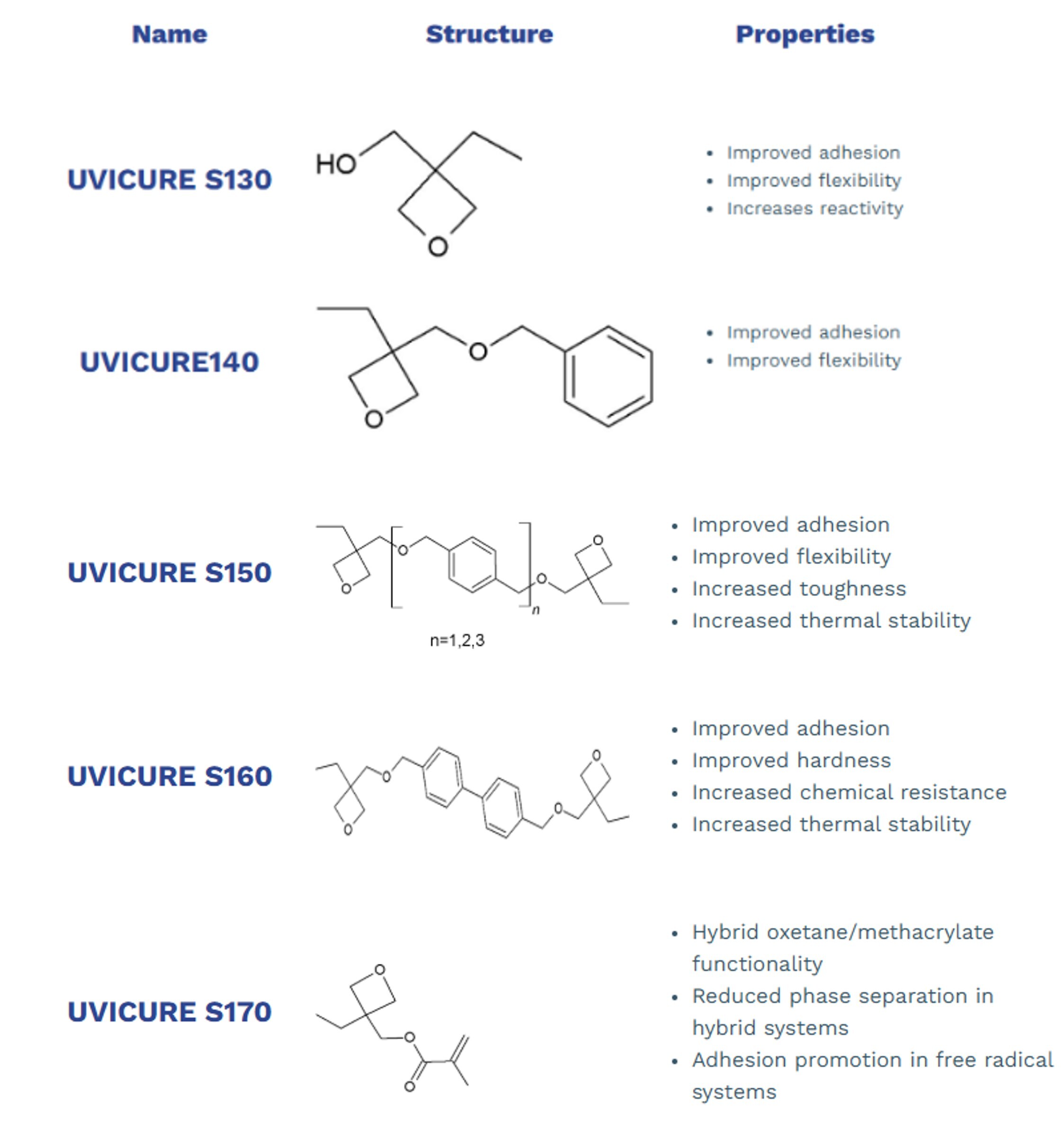 - Oxetane resins, available under the UviCure name.